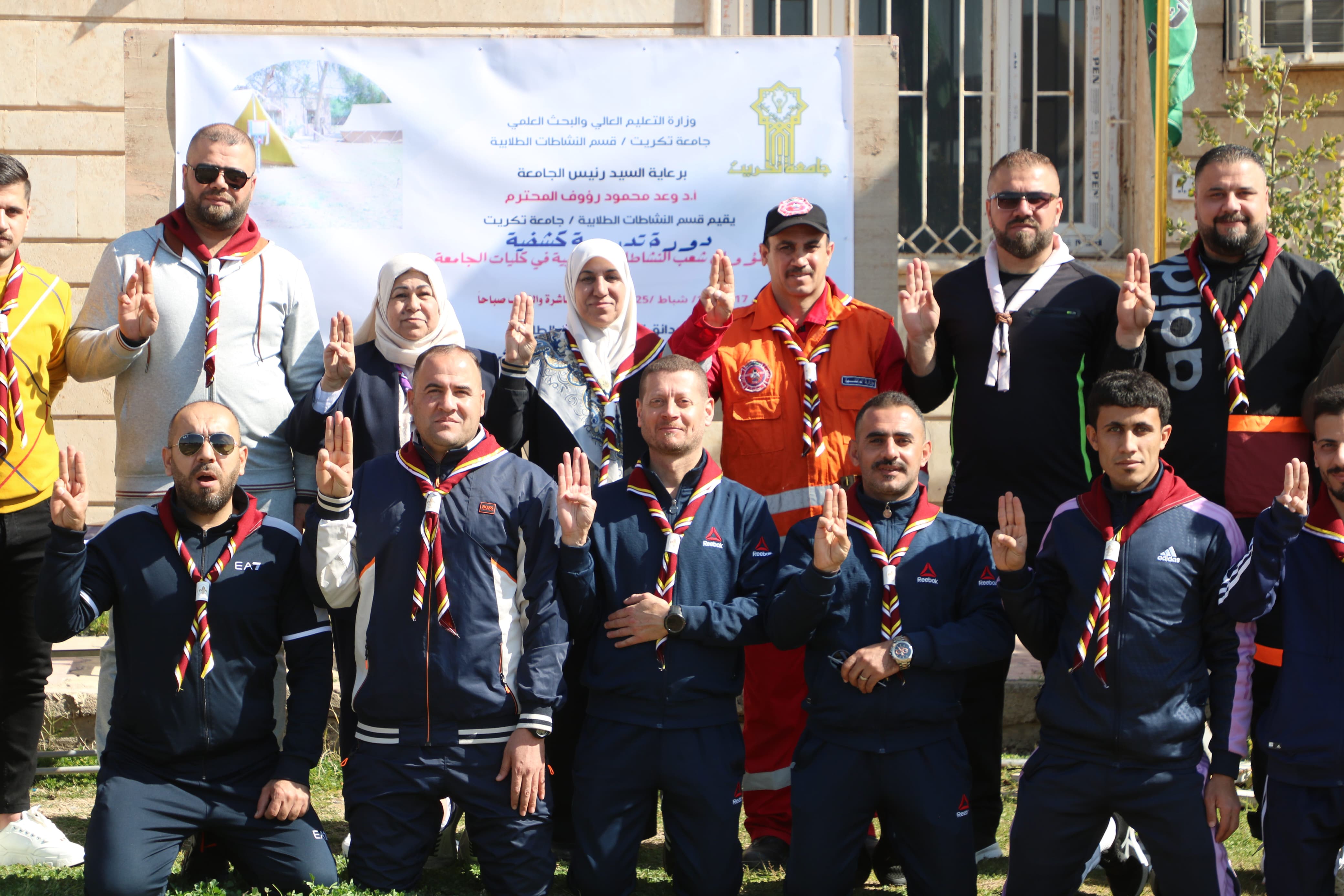 برعاية وحضور الاستاذ الدكتور وعد محمود رؤوف رئيس جامعة تكريت وحسب منهج جهاز الاشراف والتقويم في الوزارة تم افتتاح الدورة التدريبية الكشفية لمسؤولي شعبة النشاطات الطلابية في كليات الجامعة والتي يقيمها قسم النشاطات الطلابية في رئاسة الجامعة بإشراف الاستاذ الدكتور ابتسام حيدر بكتاش، والتي شارك فيها مسؤول شعبة النشاطات الطلابية في كليتنا السيد ابراهيم اخمد عتاوي بفعالية الاسعافات الاولية (توظيف المهارات الكشفية في الاسعافات الاولية).