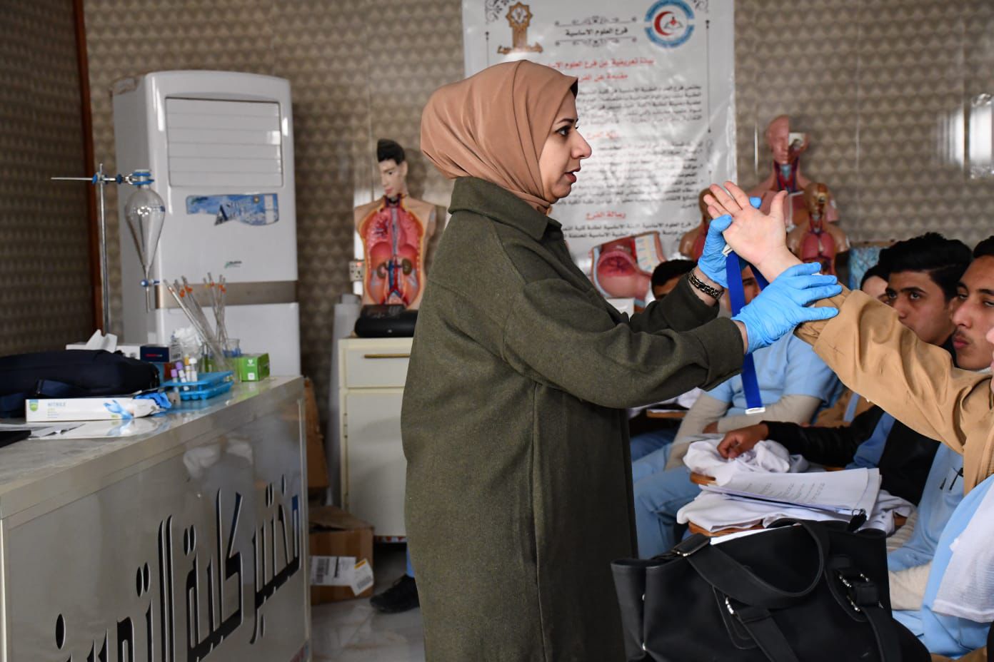 وهدفت هذه الدورة الى تعليم الطلبة دورهم كممرضين في اتقان طريقة سحب الدم وقراءة نتائج التحاليل ومعرفة النسب الطبيعية وتفسيرها.