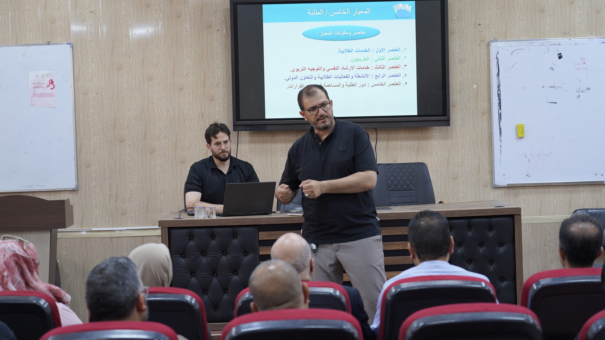 وشدد الدكتور أركان خلال الورشة على أهمية تفعيل دور وحدات الجودة في الكلية والعمل وفق منهجية علمية مدروسة تضمن استدامة الأداء الأكاديمي ورفع مستوى المخرجات التعليمية كما دعا الى تعزيز التعاون والتكامل بين الأقسام العلمية والوحدات الإدارية لتحقيق الأهداف الاستراتيجية للكلية