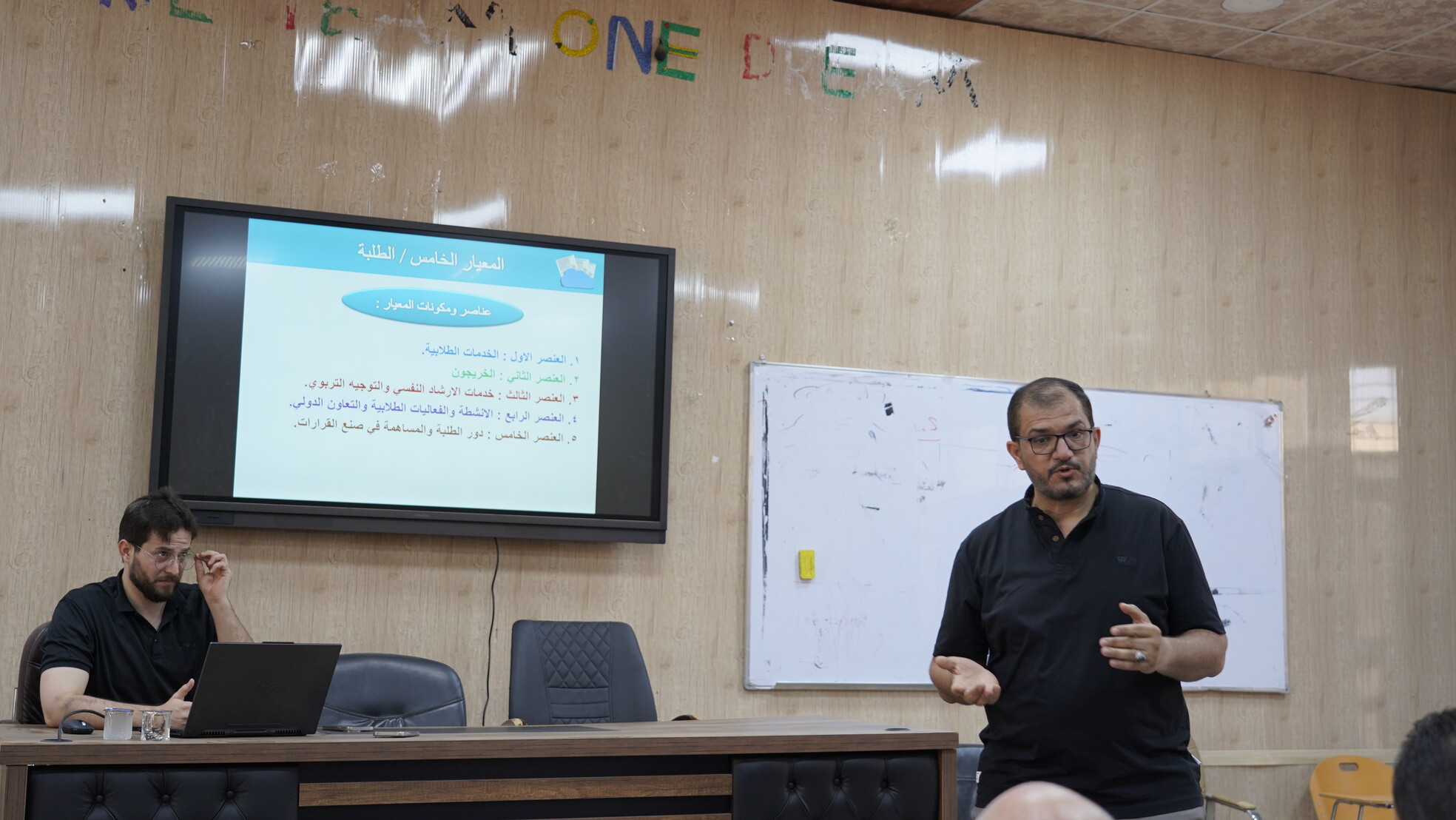 وهدفت الورشة التي احتضنتها قاعة المؤتمرات في الكلية الى مناقشة آليات العمل المؤسسي وتوزيع المهام بين وحدات ضمان الجودة المختلفة بالإضافة إلى تحديث خطط العمل بما يتماشى مع متطلبات الاعتماد البرامجي ومعايير تقييم الأداء المعتمدة من قبل وزارة التعليم العالي والبحث العلمي