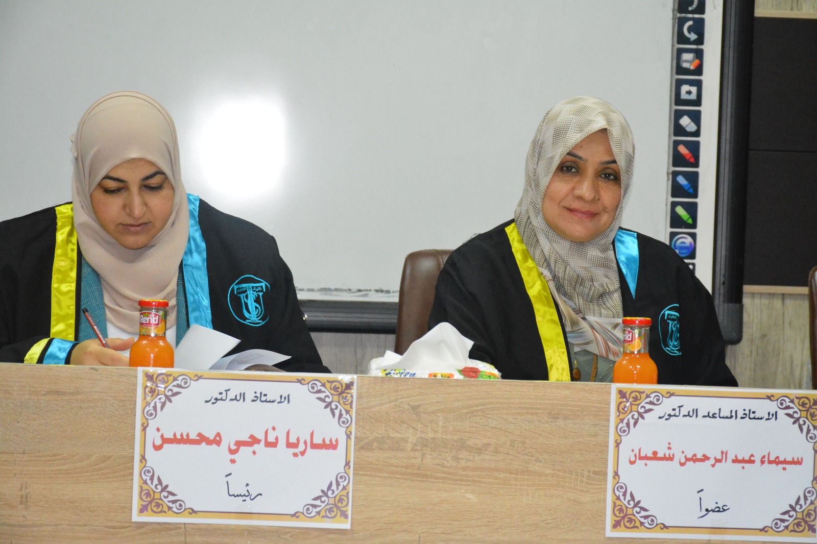 شاركت ا. م. د سرى سعد عبد العزيز معاون عميد كلية التمريض للشؤون العلمية واحد أعضاء الهيئة التدريسية لكليتنا، بصفة عضو في لجنة مناقشة رسالة ماجستير في كلية العلوم بجامعة تكريت يوم الاربعاء الموافق 4-9-2024