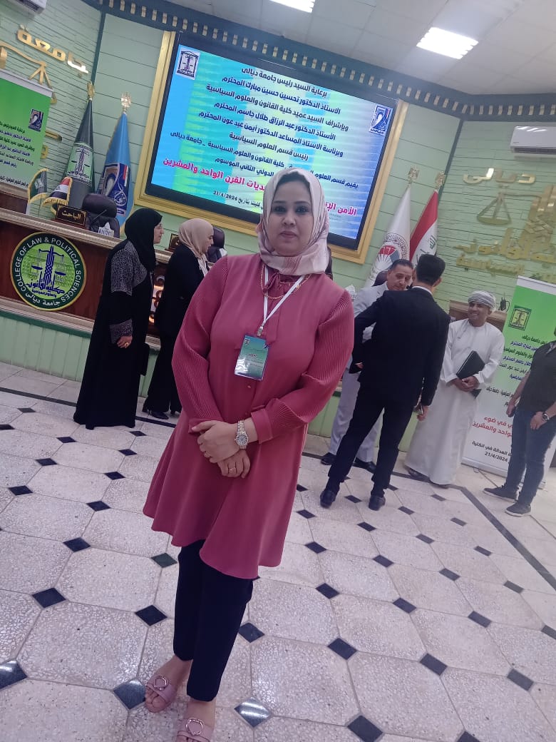 شاركت التدريسية المدرس المساعد الاء محمد حسن عن كلية التمريض جامعة تكريت في المؤتمر العلمي الدولي الثاني الموسوم الامن الانساني في ضوء تحديات القرن الحادي والعشرون والذي أقيم في رحاب جامعة ديالى كلية القانون والعلوم السياسية على قاعة العدالة يوم الأحد الموافق ٢٠٢٤/٤/٢١.