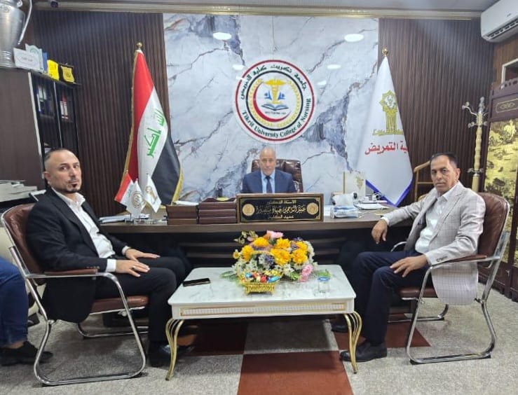 استقبل الاستاذ الدكتور عبدالرحمن جهاد منصور عميد كلية التمريض اليوم الاربعاء 30/ 4/ 2025 في مكتبه السيد حسين جمعة نقيب التمريض فرع صلاح الدين والوفد المرافق له