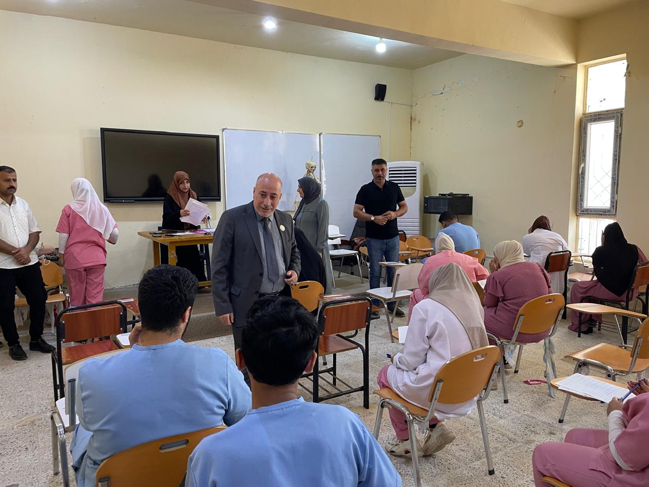 الاستاذ الدكتور عبد الرحمن جهاد منصور عميد كلية التمريض يتفقد سير عملية امتحانات الدور الثاني لطلبة كلية التمريض جامعة تكريت