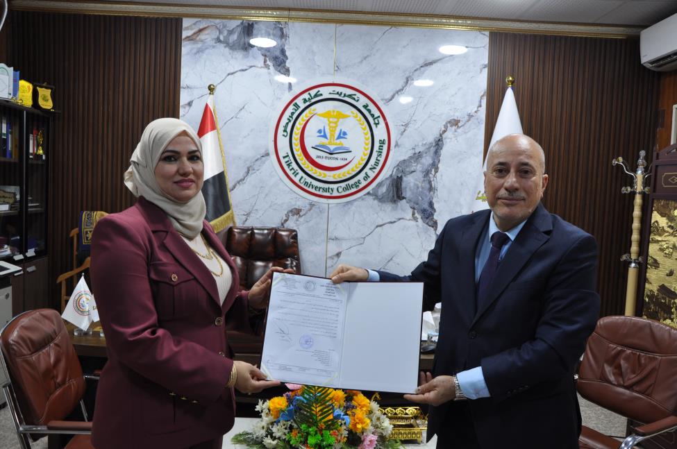 لكل نجاح شكر وتقدير بهذه الكلمات تقدمت عمادة كلية التمريض بجامعة تكريت متمثلةً بعميدها وكادرها التدريسي والوظيفي والطلابي إلى السيد معاون العميد للشؤون العلمية (أ. م. د. سرى سعد عبد العزيز) بمناسبة إنهاء تكليفها من مهام منصبها، وتكليف (أ. د. ميلاد عدنان مزهر) بمهام منصب (معاون العميد للشؤون العلمية) وقد عبر السيد عميد الكلية بأصدق معاني الوفاء والتقدير لجهودها أثناء فترة توليها منصب المعاون طيلة السنوات الماضية متمنياً لها التوفيق بحياتها العلمية والعملية، كما وتقديم سيادته بالتهاني والتبريكات للمعاون الجديد متمنياً منها ان تكمل المسيرة بنفس الهمة والمثابرة ومن الله التوفيق.