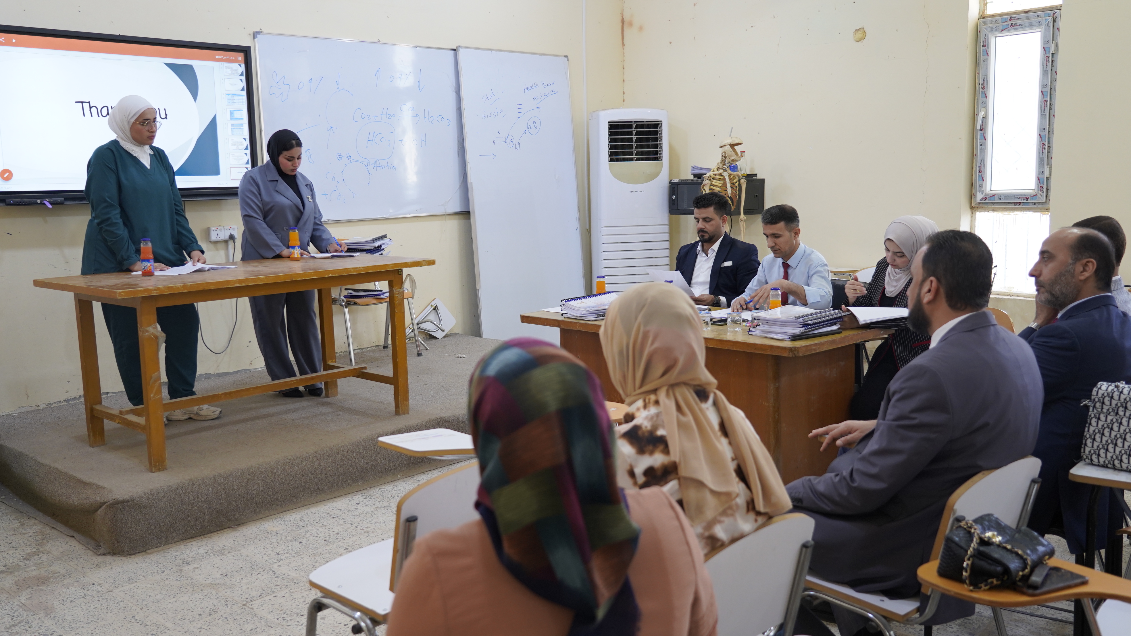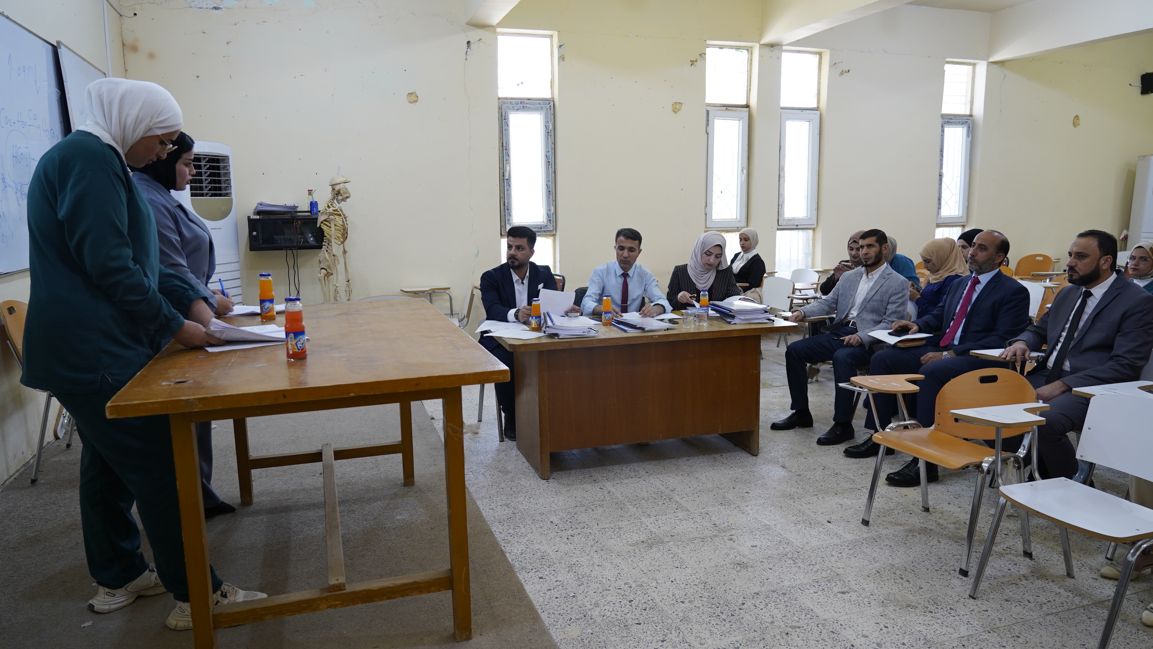 بأشراف وحضور الاستاذ الدكتور عبدالرحمن جهاد منصور عميد كلية التمريض وبمتابعة الاستاذ المساعد الدكتور خضر جاسم الفحل معاون العميد للشؤون الادارية انطلقت على بركة الله وفي أجواء علمية رصينة مناقشات بحوث تخرج طلبة المرحلة الرابعة في كلية التمريض والتي احتضنتها القاعات الدراسية في الكلية وقد عكست جلسات المناقشات الاجواء العلمية والأكاديمية بين الطلبة المناقشين ولجان المناقشات اذ تضمنت مناخات التحليل العلمي العميق للبحوث المقدمة وإستعراض للطرق المنهجية والتحليلية المستخدمة والمتبعة في هذه البحوث لتقديم والحصول على الإستتنتاجات