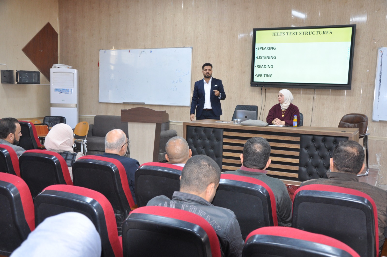 برعاية السيد رئيس جامعة تكريت أ.د وعد محمود رؤوف المحترم وبإشراف عميد كلية التمريض أ. د. عبد الرحمن جهاد منصور المحترم وبالتعاون مع مركز التعليم المستمر اقامت كلية التمريض بجامعة تكريت ندوة تعليمية حضورية بعنوان (TIPS AND HINTS FOR IElTS PREPARATION) وذلك اليوم الخميس الموافق 5/ 12/ 2024 وكان المحاضرون فيها كل من: