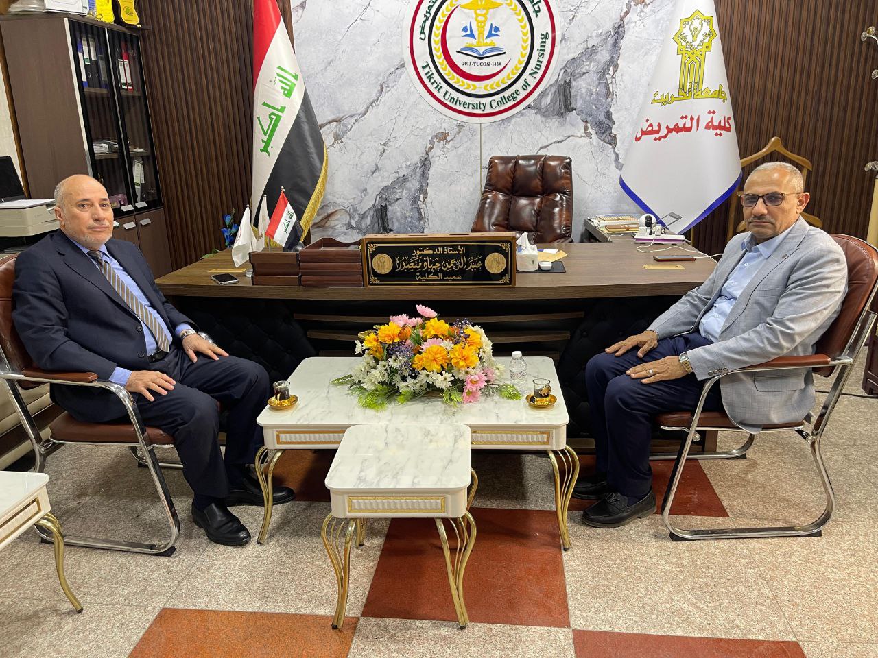 في إطار تعزيز التعاون الأكاديمي وتبادل الخبرات بين كليات جامعة تكريت استقبل الاستاذ الدكتور عبدالرحمن جهاد منصور عميد كلية التمريض في مكتبه اليوم الثلاثاء الموافق ١٥/ ٧/ ٢٠٢٥ الأستاذ الدكتور خميس خلف حسن عميد كلية هندسة الشرقاط