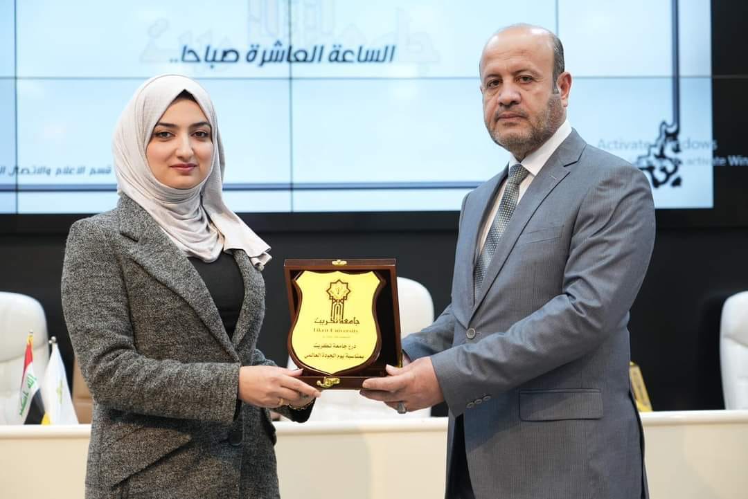 وفي ختام الحفل تم تكريم مديرة شعبة ضمان الجودة والاداء الجامعي في كلية التمريض م.م. ايات مناف حميد وعدد من مدراء الشعب في الكليات بدرع جامعة تكريت تقديرا لجهودهم المبذولة وإسهاماتها المتميزة.
