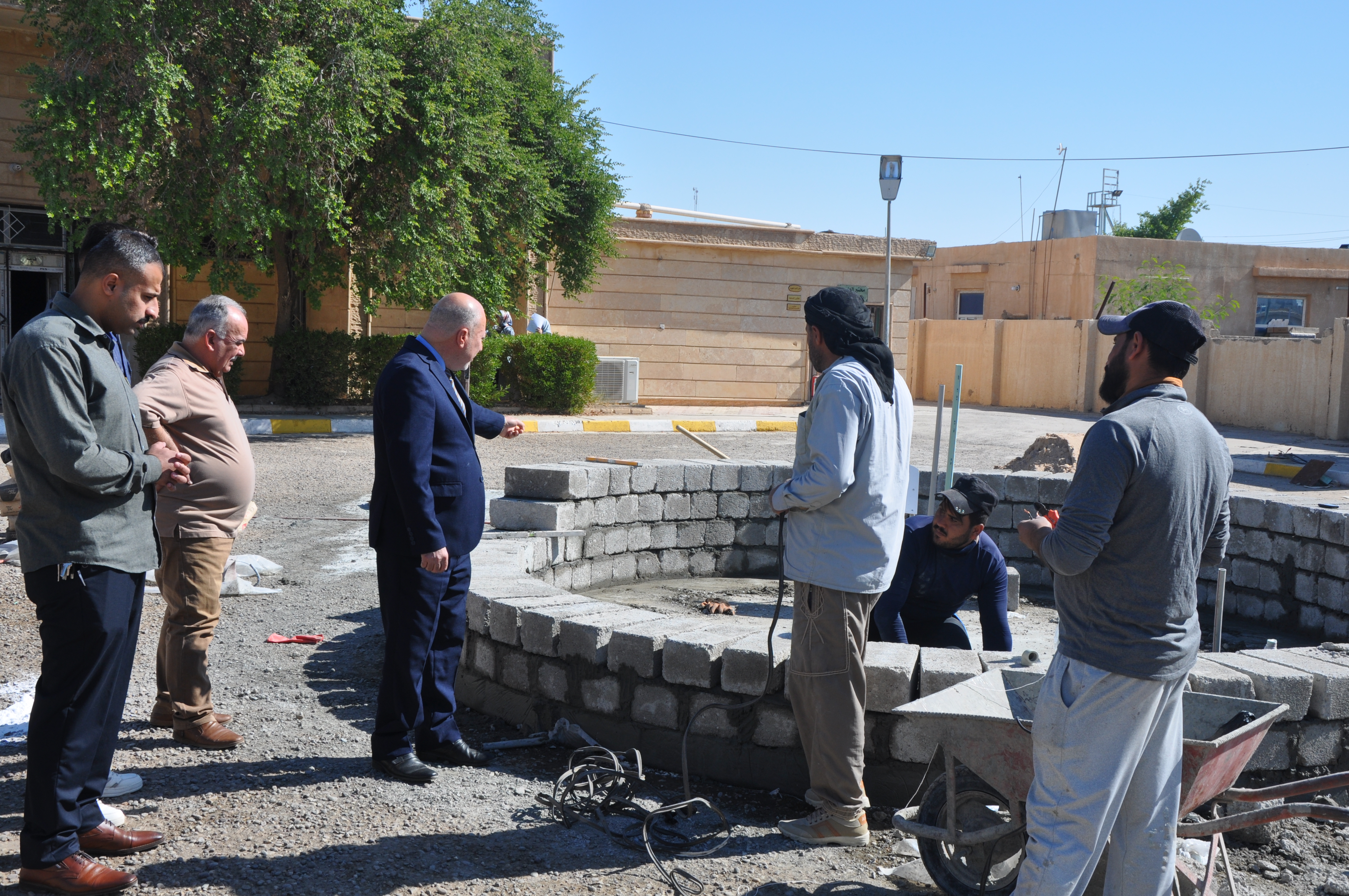 ضمن جولاته الميدانية اليومية تابع عميد كلية التمريض- جامعة تكريت الأستاذ الدكتور عبدالرحمن جهاد منصور المحترم اعمال الصيانة والتأهيل والترميم والتطوير للبنى التحتية لابنية الكلية واروقتها، بهدف الوقوف على نسب الانجاز المتحققة في اعمال الصيانة والتأهيل والتي تجري بتوجيه وإشراف مباشر من قبله وبجهود متميزة من منتسبي شعبة الحدائق والخدمات وشعبة الصيانة بالكلية واعضاء اللجان بكوادرها من تدريسيين وفنيين واداريين، بمتابعة من قبل معاون العميد للشؤون الادارية الاستاذ المساعد الدكتور خلف نهر احمد