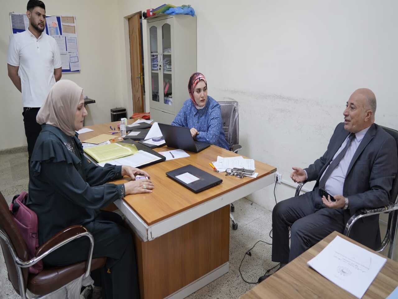 في اطار متابعاته المستمرة لسير العمل في اقسام ومفاصل الكلية وخلال فترة العطلة الصيفية اجرى الأستاذ الدكتور عبدالرحمن جهاد منصور عميد كلية التمريض بجامعة تكريت جولة ميدانية شملت شعبة الإعلام وشعبة الترقيات العلمية واللجنة الامتحانية بالإضافة إلى شعبة التسجيل في الكلية وذلك للاطلاع على واقع العمل ومتابعة الإجراءات الإدارية والفنية الجارية خلال هذه الفترة
