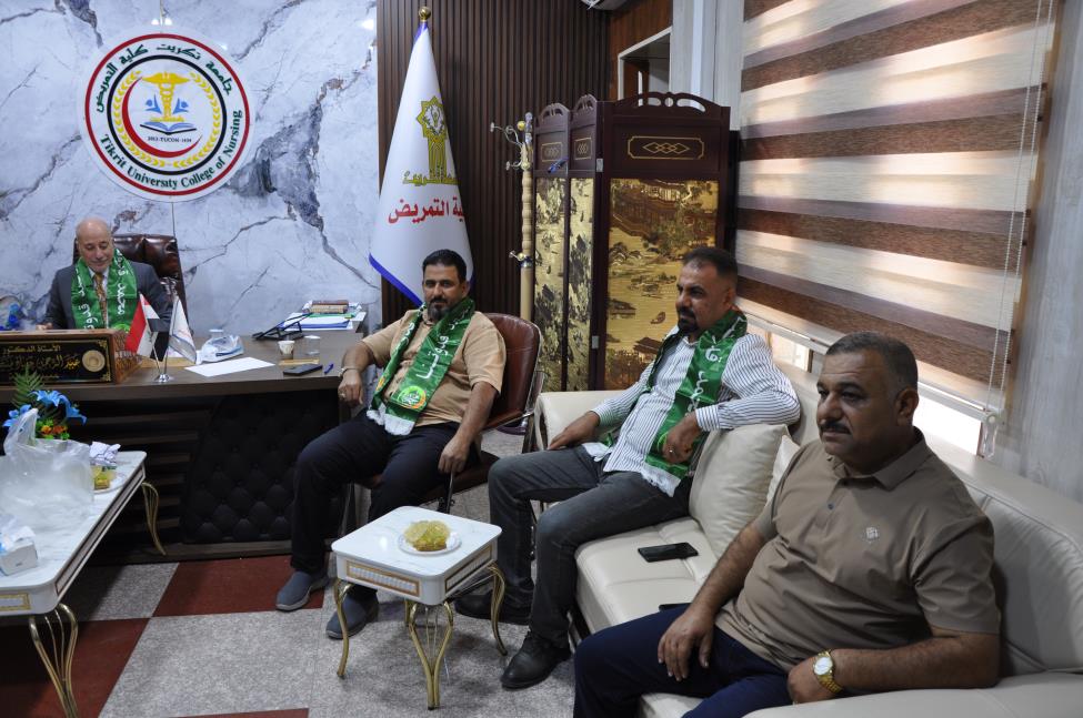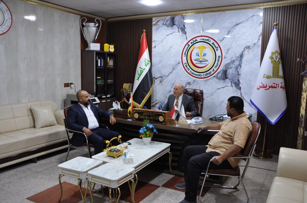 استقبل ا. د عبد الرحمن جهاد منصور عميد كلية التمريض في مكتبه مدير قسم المتابعة في جامعة تكريت السيد معصتم خضير حسين ونخبة من موظفي القسم وجرى خلال اللقاء مناقشة منظومة الكاميرات والشاشات الخاصة بها بالإضافة إلى الجانب الأمني للكلية .