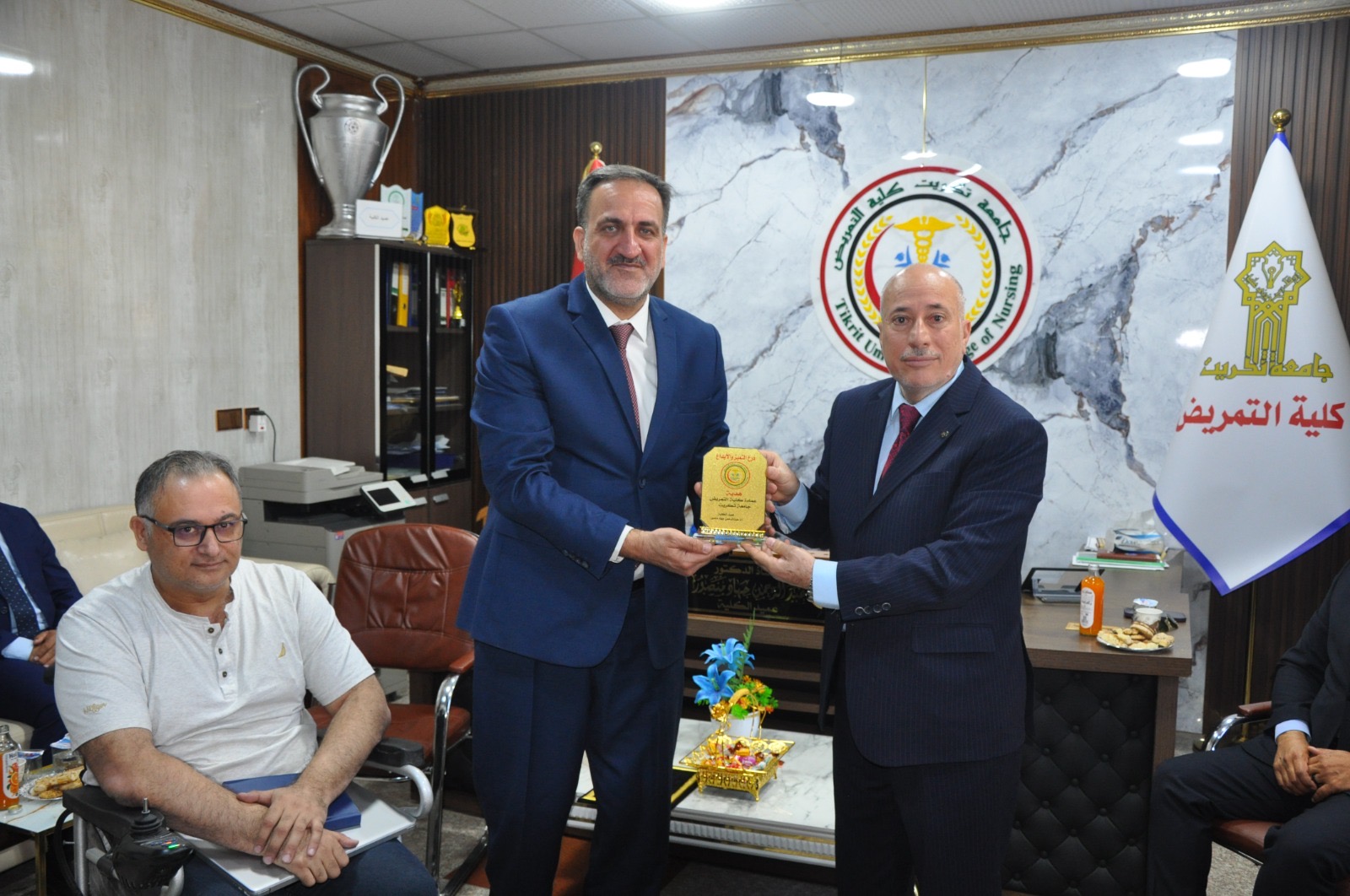 استقبل أ.د عبد الرحمن جهاد منصور عميد كلية التمريض المحترم في مكتبه صباح يوم الاربعاء 2024/10/23 وفد وزارة العدل لجنة حقوق الانسان وتم خلال الزيارة مناقشة ملف المرأة المعاقة إلى ذلك أبدى الوفد الزائر استعداده التام لفتح آفاق التعاون المشترك مع عمادة الكلية وإقامة الورش والندوات العلمية التوعوية في مجال حقوق الانسان دعماً للبرنامج التعليمي في الكلية وتطويره .