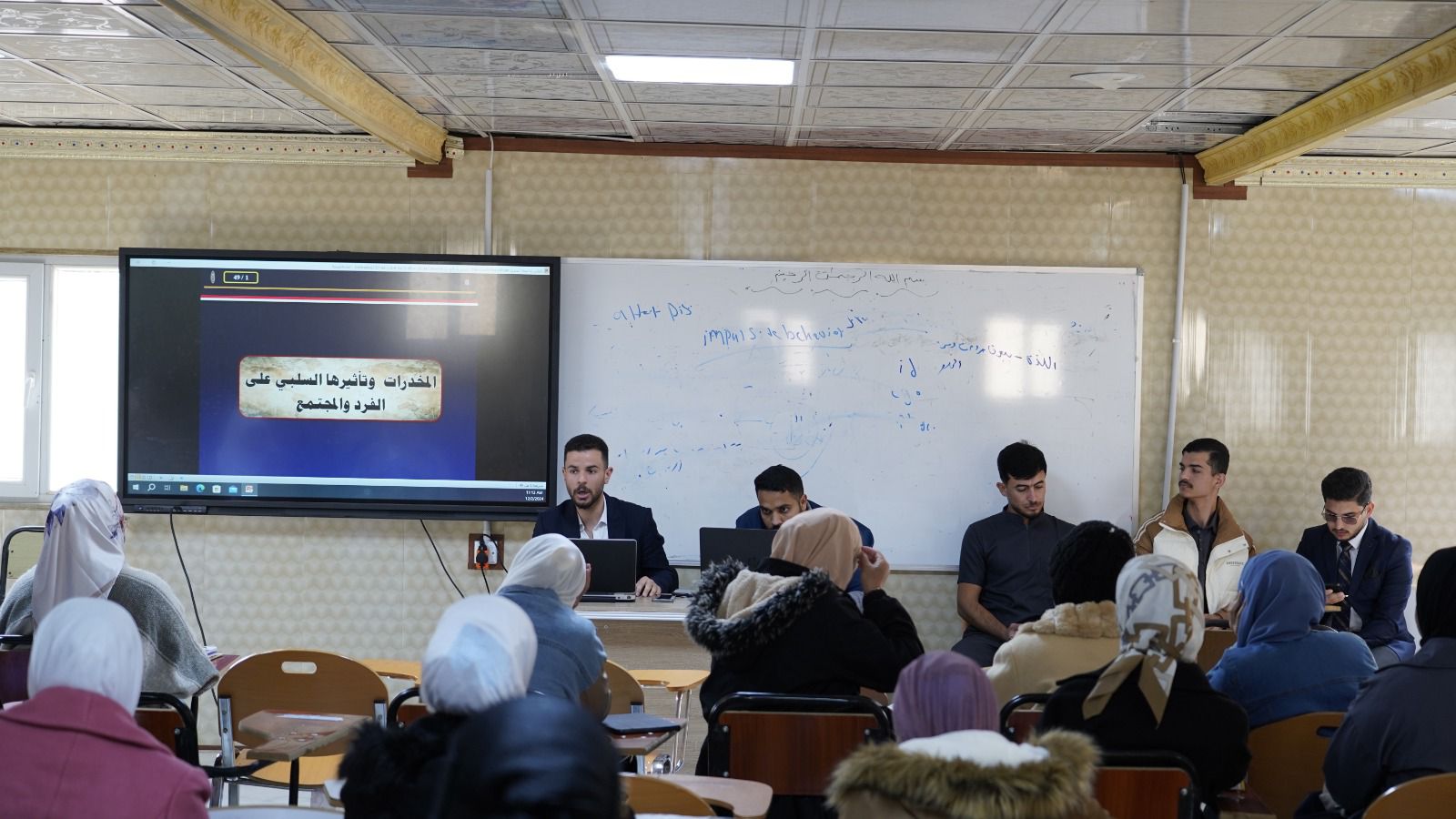 نظم مجموعة من طلبة كلية التمريض وتحت اشراف أ. م. د. ميثاق بيات والسيد انس علي والسيد بازالدين باسل حملة توعوية اقامها الفريق التوعوي من طلبة كلية التمريض ضد المخدرات وقد تناولت الحملة التعريف بالمخدرات واصنافها واسباب تعاطيها وتأثيراتها على الفرد والمجتمع وماهي سبل الوقاية والعلاج والعواقب القانونية بحق المتعاطي.