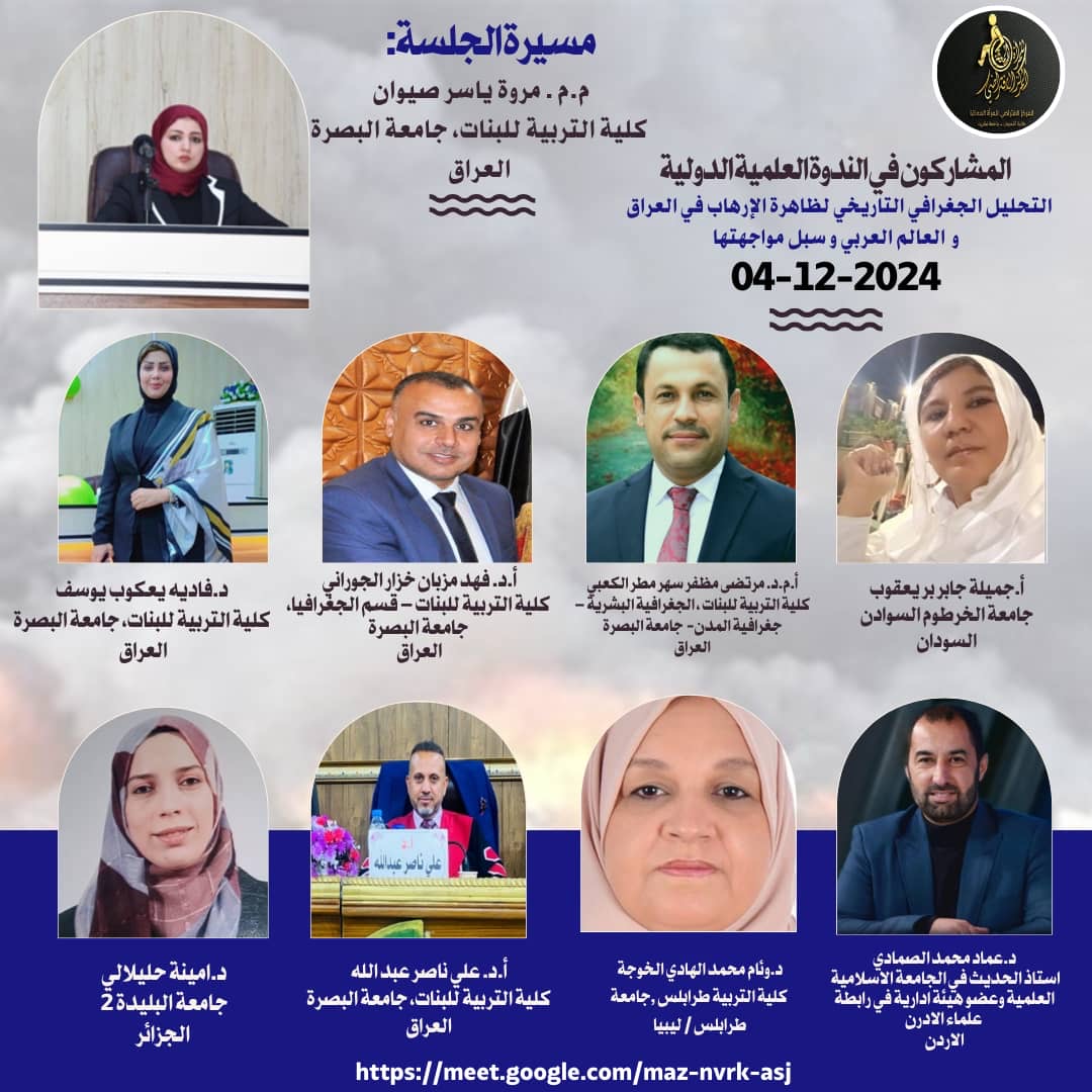 برعاية السيد رئيس جامعة تكريت أ.د وعد محمود رؤوف المحترم والسيد رئيس جامعة البصرة أ.د مهند جواد كاظم المحترم وبإشراف السيد عميد كلية التمريض أ.د عبدالرحمن جهاد منصور المحترم والسيد عميد كلية التربية للبنات أ.د أمل محمد عبدالكريم المحترم ومدير مركز المرأة المعاقة د. ميثاق بيات الضيفي وفي عالم يعاني من تحديات جسيمة على الصعيدين الأمني والسياسي، تبرز الحاجة الملحة لفهم أعمق للظواهر التي تهدد استقرارنا. ينظم مركز المرأة المعاقة في جامعة تكريت وبالتعاون مع كلية البنات بجامعة البصرة ومؤسسة BRC العلمية وبالتعاون مع مركز التعليم المستمر جامعة تكريت وكذلك مع مؤسسات وجامعات علمية عراقية وعربية رصينة.