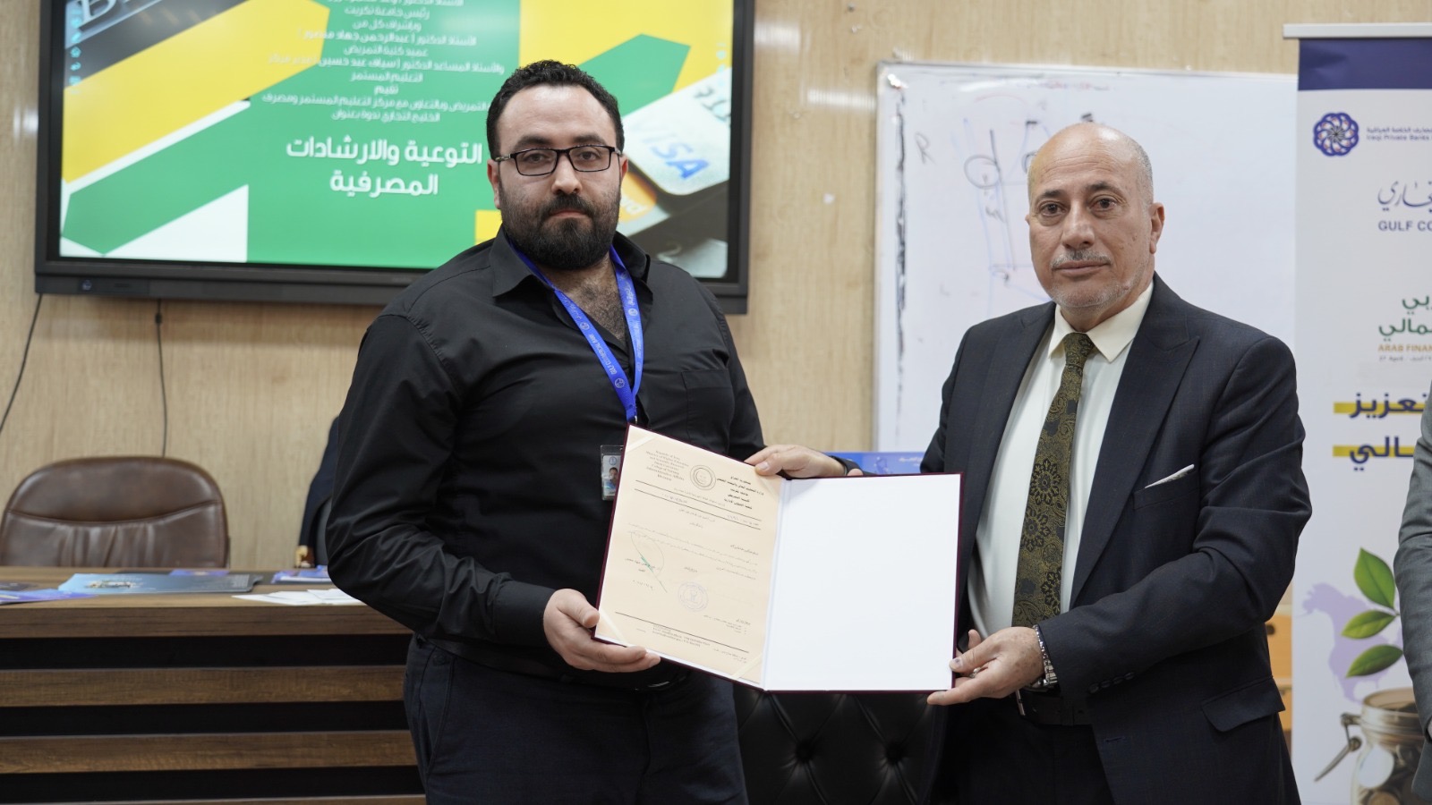 برعاية السيد رئيس جامعة تكريت (أ. د. وعد محمود رؤوف المحترم) والسيد عميد كلية التمريض (أ. د. عبد الرحمن جهاد منصور المحترم) نظمت كليتنا وبالتعاون مع مركز التعليم المستمر ومصرف الخليج التجاري ندوة بعنوان (التوعية والإرشادات المصرفية) وذلك اليوم الاثنين الموافق 30/12/2024 وعلى القاعة رقم (1) في الكلية.