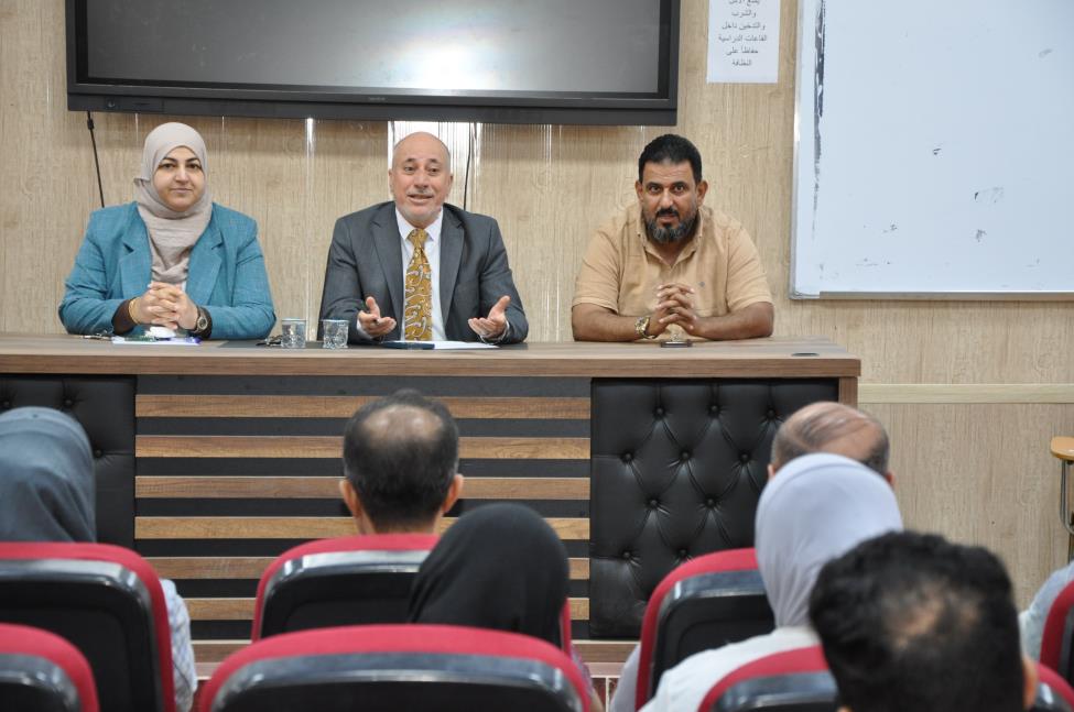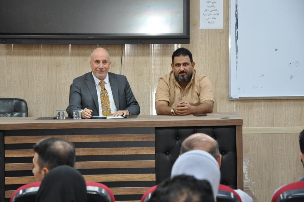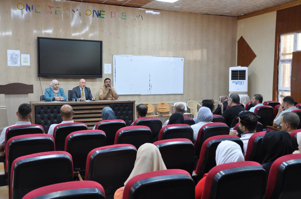 عقد السيد عميد كلية التمريض الاستاذ الدكتور عبدالرحمن جهاد منصور المحترم وبحضور معاون العميد للشؤون الادارية الاستاذ المساعد الدكتور خلف نهر احمد والاستاذ المساعد الدكتور سرى سعد عبدالعزيز معاون العميد للشؤون العلمية اجتماعاً موسعاً مع اعضاء الهيئة التدريسية و الكادر الوظيفي للكلية وفي بداية اللقاء رحب السيد عميد الكلية بالسادة الحضور متمنياً للجميع التوفيق في الأعمال الموكلة لهم واستمع إلى طروحات السادة المعاونين والموظفين والعقبات التي تعترض سير العمل والسبل اللازمة لحلها ووجه السيد عميد الكلية بإتباع السياقات الإدارية الصحيحة للحفاظ على سير العمل الإداري وتطويره وتنفيذ الواجبات الموكلة للجميع بدقة عالية مؤكداً على التعاون بين منتسبي الكلية لسير العمل بصورة صحيحة وفي ختام الاجتماع وجه السيد عميد الكلية شكره للجميع على جهودهم القيمة لخدمة كليتنا العزيزة.
