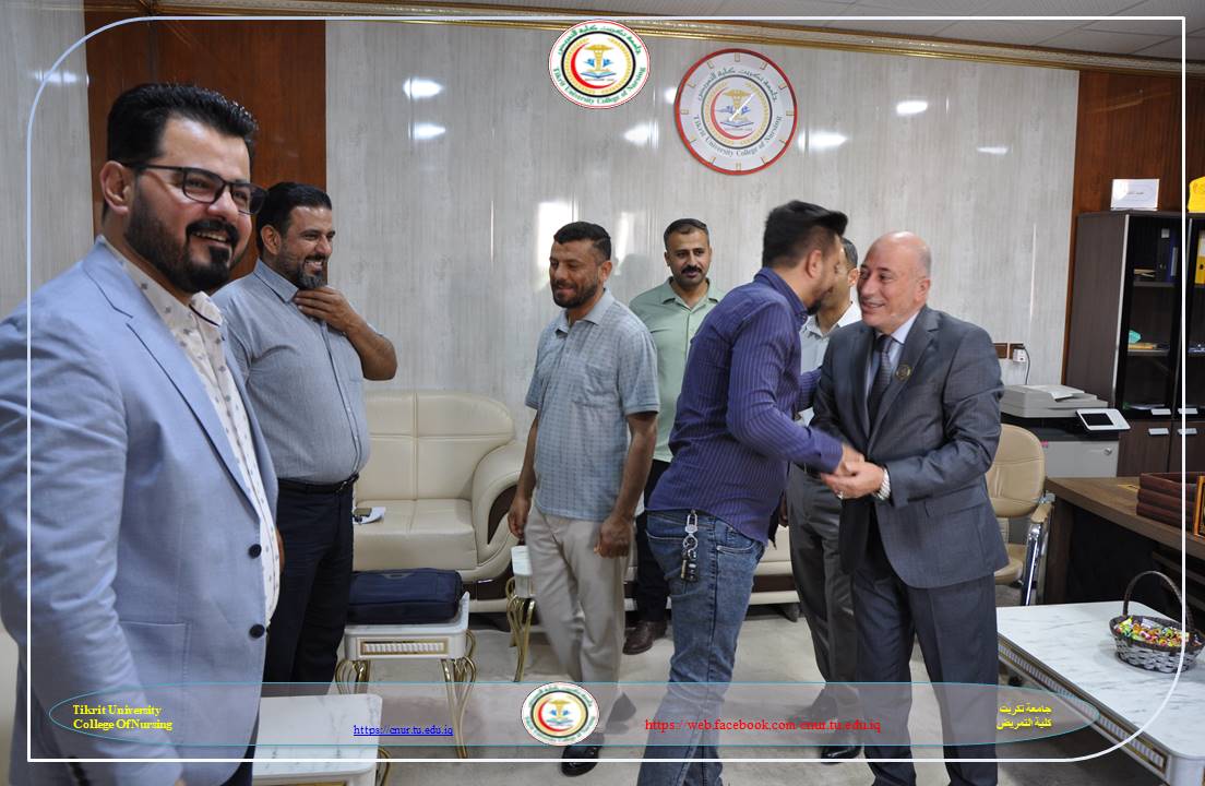 إستقبل السيد عميد الكلية الأستاذ الدكتور عبدالرحمن جهاد منصور في مكتبه صباح هذا اليوم الاحد الموافق ٢٠٢٤/٤/١٤ أساتذة وموظفي الكلية يتقدمهم الاستاذ المساعد الدكتور خلف نهر احمد المعاون الاداري ليقدموا له التهاني والتبريكات بمناسبة عيد الفطر المبارك متمنين له الصحة والسلامة والموفقية في عمله ومهامه في الكلية ومن جانبه وجه سيادته لهم أزكى التهاني والتبريكات بهذه المناسبة المباركة.
