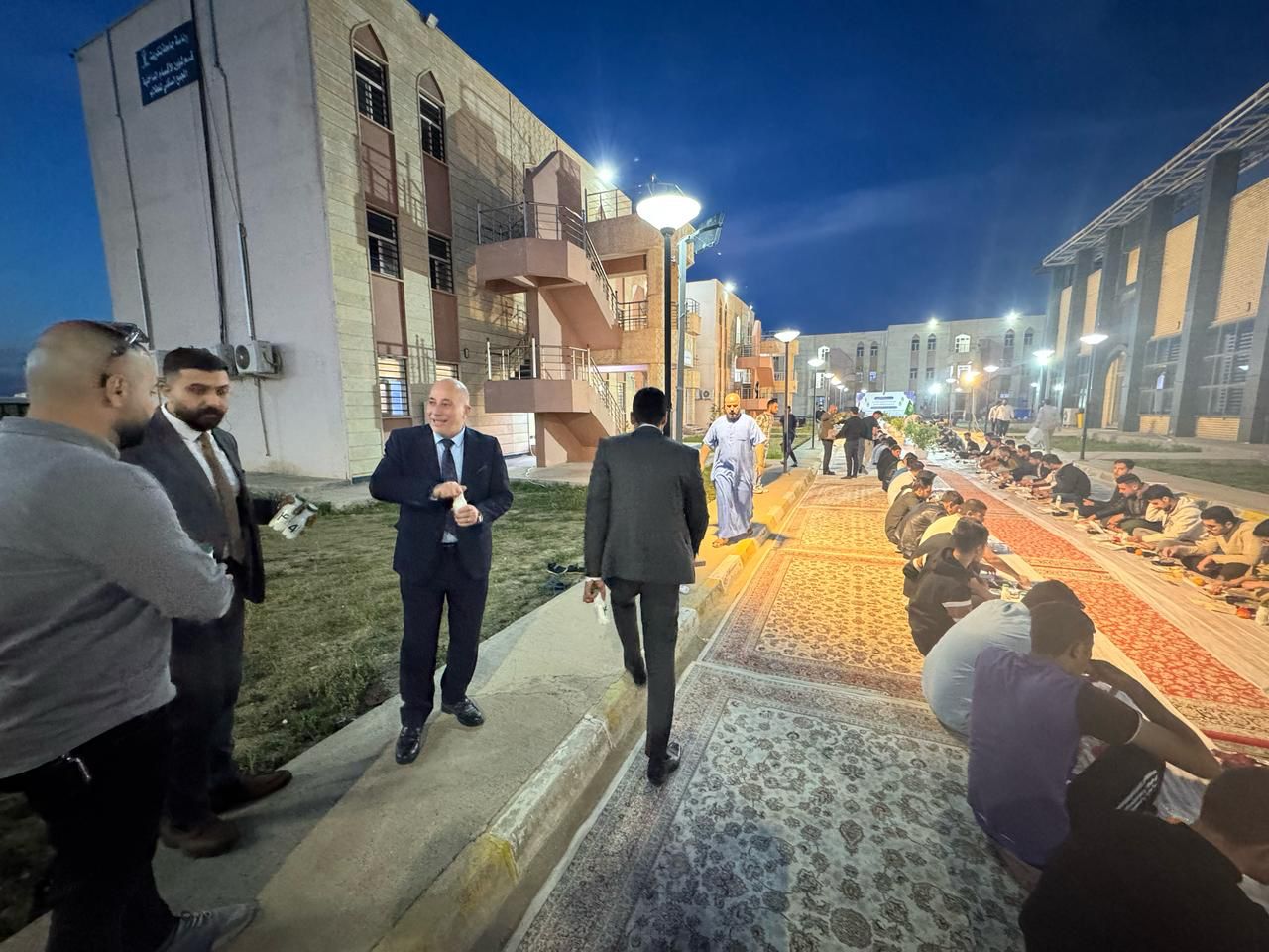 واكد السيد العميد ان اقامة هذه الوجبة يأتي لمشاركة الطلبة طقوس هذا الشهر الفضيل ولتخفيف العبء عنهم ورفع جزء من معاناتهم حيث تم توفير وجبات افطار جاهزة لهم في اماكن اقامتهم وذلك في إطار تعزيز دور الجامعة في رعاية ابناءها الطلبة القاطنين في الاقسام الداخلية من سكنة المحافظات واقضية ونواحي محافظة صلاح الدين