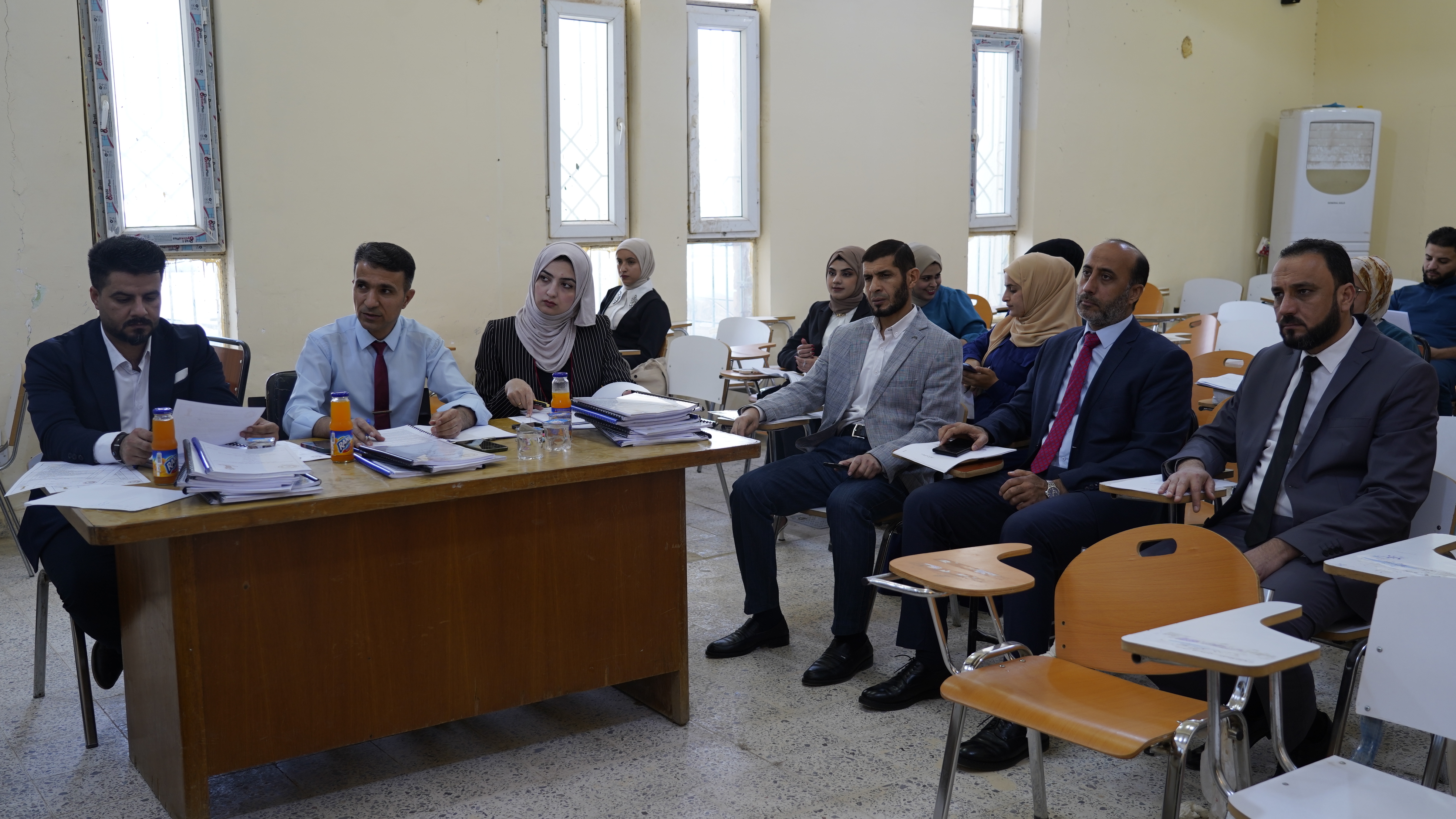 بأشراف وحضور الاستاذ الدكتور عبدالرحمن جهاد منصور عميد كلية التمريض وبمتابعة الاستاذ المساعد الدكتور خضر جاسم الفحل معاون العميد للشؤون الادارية انطلقت على بركة الله وفي أجواء علمية رصينة مناقشات بحوث تخرج طلبة المرحلة الرابعة في كلية التمريض والتي احتضنتها القاعات الدراسية في الكلية وقد عكست جلسات المناقشات الاجواء العلمية والأكاديمية بين الطلبة المناقشين ولجان المناقشات اذ تضمنت مناخات التحليل العلمي العميق للبحوث المقدمة وإستعراض للطرق المنهجية والتحليلية المستخدمة والمتبعة في هذه البحوث لتقديم والحصول على الإستتنتاجات