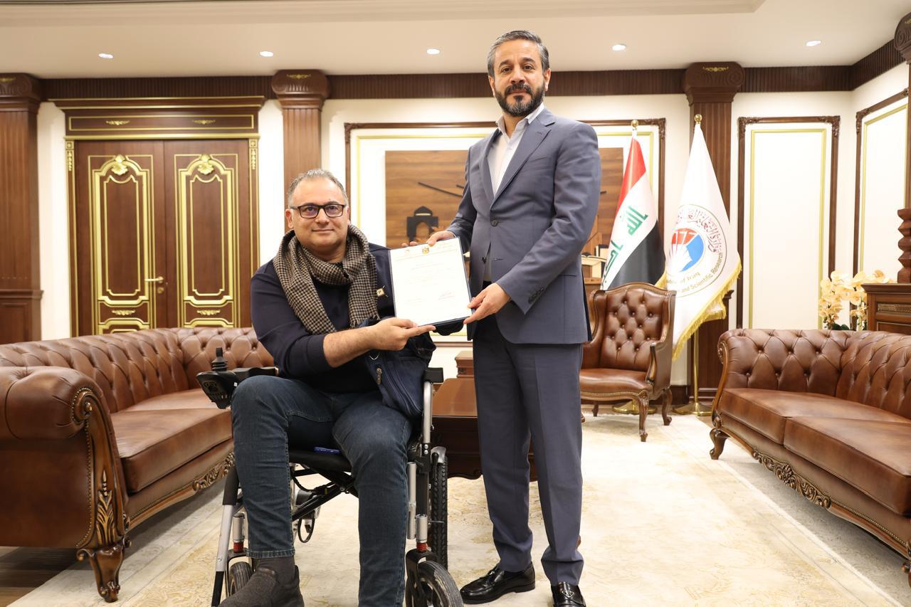 التقى التدريسي في كليتنا الأستاذ المساعد الدكتور ميثاق بيات الضيفي مدير المركز الافتراضي للمرأة المعاقة بمعالي وزير التعليم العالي والبحث العلمي في خطوة غير مسبوقة تهدف إلى تمكين المرأة وفتح آفاق جديدة لها في مجال العلم والمعرفة وتم تسليط الضوء على الدعم العلمي الكبير الذي يقدمه معالي الوزير للمركز الافتراضي للمراة المعاقة، واكد الضيفي ان اللقاء حمل في طياته رسائل قوية حول العدالة و التمكين مع التأكيد على أهمية دور المراكز العلمية في تحقيق التغيير الحقيقي، بما يضمن للمرأة المعاقة فرصة للتميز والابتكار.