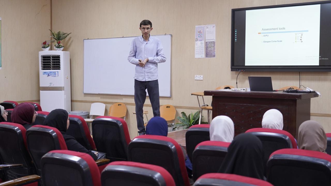 بمناسبة بدء العام الدراسي الجديد ٢٠٢٥- ٢٠٢٦ وانطلاق المحاضرات في كلية التمريض قام الاستاذ الدكتور عبدالرحمن جهاد منصور عميد الكلية بجولة تفقدية في القاعات الدراسية للاطلاع على سير العملية التعليمية ومدى جاهزيتها لاستقبال الطلبةواكد السيد العميد خلال جولته على اهمية توفير البيئة الدراسية المناسبة التي تضمن انطلاقا ناجحا للعام الدراسي مشددا على ضرورة الالتزام بالانضباط الأكاديمي والتفاعل الايجابي بين الطلبة والتدريسيين