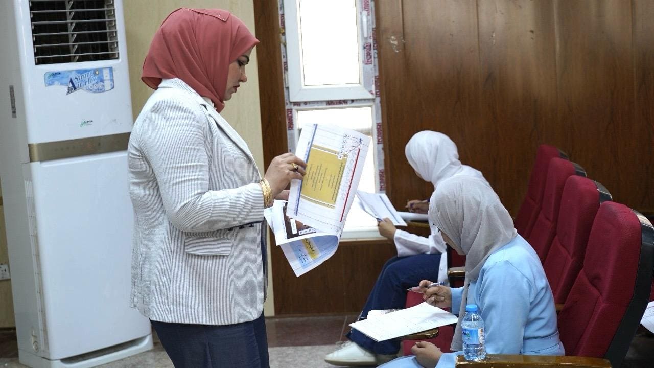 في إطار المتابعة المستمرة للعملية الامتحانية وبتوجيه من الاستاذ الدكتور عبدالرحمن جهاد منصور عميد كلية التمريض أجرت الاستاذ الدكتورة ميلاد عدنان مزهر معاون العميد للشؤون العلمية في كلية التمريض بجامعة تكريت جولة ميدانية يوم الخميس الموافق 29-5-2025 للاطلاع على سير الامتحانات النهائية للفصل الدراسي الثاني لطلبة المرحلة الاولى