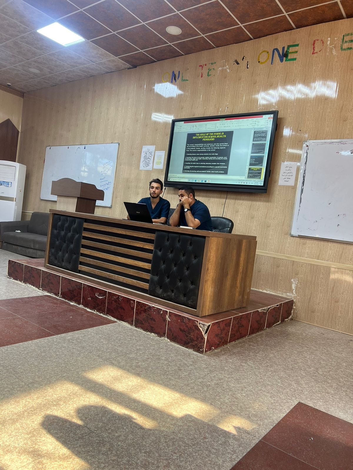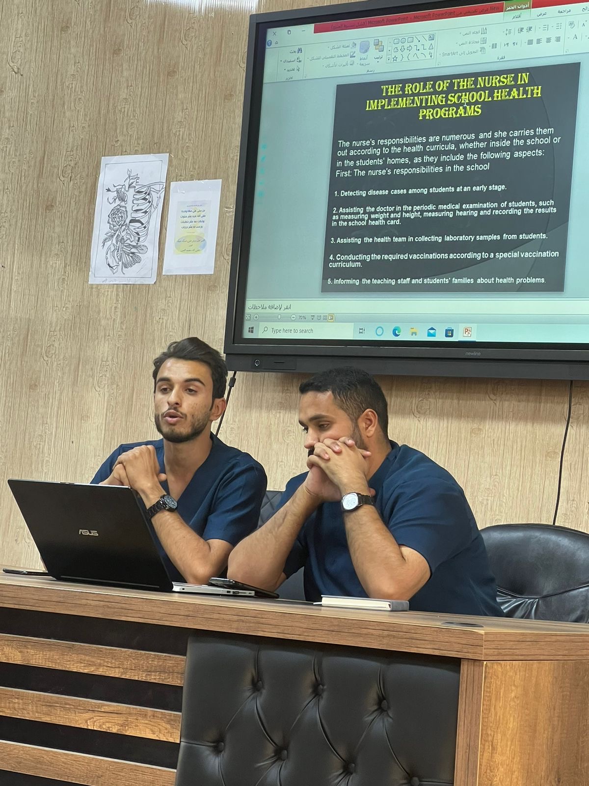 ناقشت كلية التمريض- جامعة تكريت حلقة السمنار بعنوان(الصحة المدرسية (School Health ) لعدد من طلبة الكلبة وباشراف م.د احمد محمود يونس وم.د هدى ضامن عبدالجبار وذلك يوم الخميس الموافق 24/ 10/ 2024 وعلى احدى قاعات الكلية في فرع العلوم السريرية وبعد المناقشة المستفيضة واجابة الطلبة على جميع الاسئلة المطروحة حول الموضوع من قبل اللجنة.