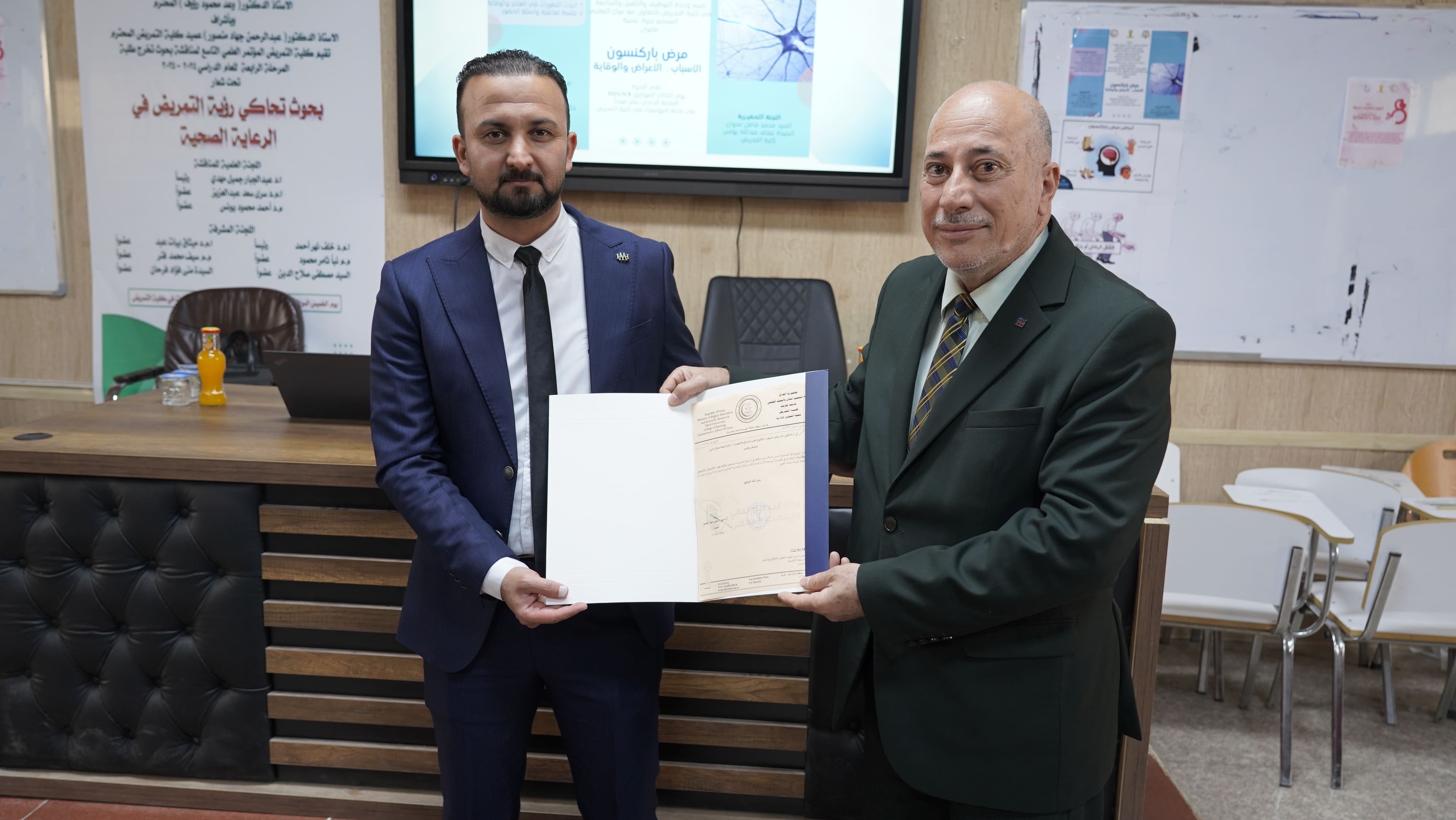 برعاية الاستاذ الدكتور ( وعد محمود رؤوف) رئيس جامعة تكريت وبأشراف كل من الاستاذ الدكتور (عبد الرحمن جهاد منصور) عميد كلية التمريض وبالتعاون مع الاستاذ المساعد الدكتور (سياف عبد حسين) مدير مركز التعليم المستمر في رئاسة الجامعة اقامت وحدة التوظيف والتأهيل والمتابعة في كلية التمريض بالتعاون مع مركز التعليم المستمر ندوة علمية تحت عنوان (مرض باركنسون الأسباب الأعراض والوقاية) احتضنت فعالياتها قاعة المؤتمرات في الكلية وهدفت الى التعريف بمرض باركنسون وانواعه وبيان اسبابه وتأثيراته وطرق الوقاية والعلاج منه وتناولت الندوة التي القى محاورها كل من السيد محمد فاضل عدوان والسيدة عفاف عبدالله يونس من كلية التمريض والمدرس الدكتور محمد موسى عبدالله كلية التمريض والدكتور نادر بشير شريف دكتوراه طب الدماغ والاعصاب من دائرة صحة صلاح الدين عدة محاور كان على رأسها مدخل تمهيدي (نظرة عامة) وإحصائيات عالمية ومحلية بالاضافة الى الأسباب وعوامل الخطر والتشخيص والعلامات التحذيرية فضلا الى الجانب النفسي والاجتماعي وأحدث التطورات في العلاج والوقاية واختتمت بجلسة تفاعلية واسئلة الحضور
