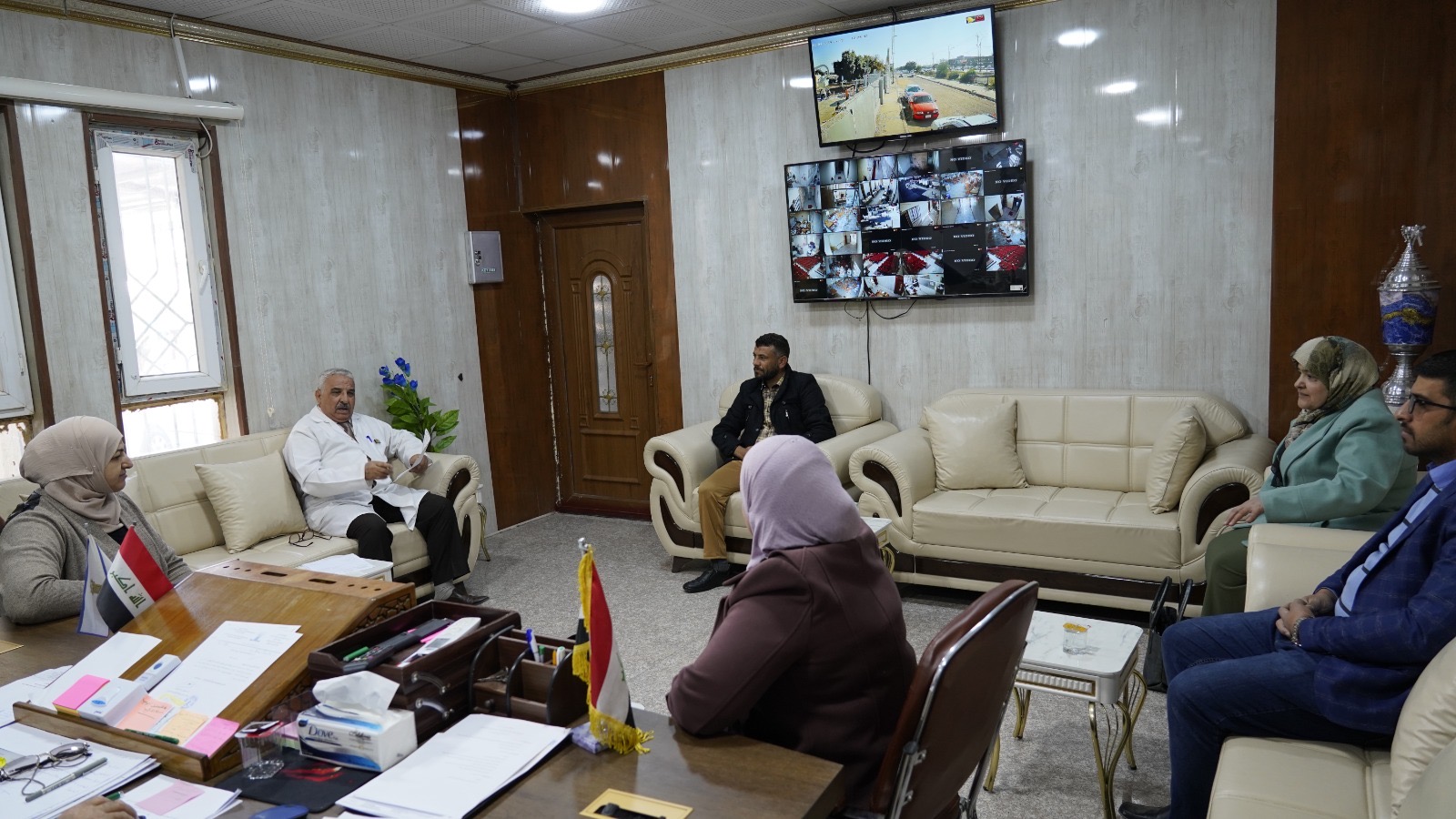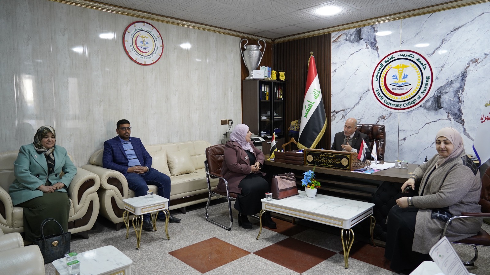من منطلق التعاون المشترك بين مؤسسات الدولة استقبل السيد عميد كلية التمريض الاستاذ الدكتور عبدالرحمن جهاد منصور المحترم وفد من دائرة صحة صلاح الدين/قسم الصحة العامة ممثلة بالدكتورة انغام صلاح حسين -طبيب اختصاص -مديرة شعبة الصحة المدرسية والدكتورة احلام عمر وهيب مسؤولة شعبة السيطرة على العوز المناعي والسيد محمد بهجت يعقوب مسؤول شؤون الطلبة