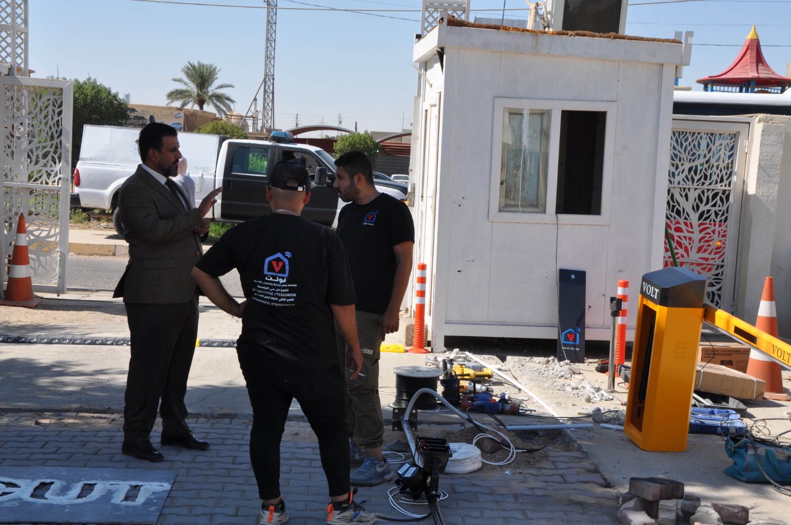 بإشراف مباشر من قبل السيد العميد المحترم ا. د عبدالرحمن جهاد منصور وبمتابعة ميدانية من قبل ا. م. د خلف نهر احمد معاون العميد للشؤون الادارية و بالتعاون مع شعبة المتابعة في الكلية تم هذا اليوم وضع حاجز مواقف السيارات الأوتوماتيكية عند بوابة الكلية من اجل إدارة دخول وخروج المركبات الى المبنى.