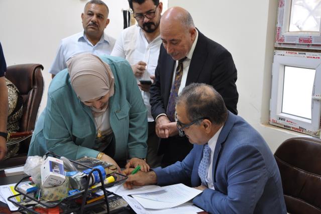 تفقد السيد مساعد رئيس الجامعة للشؤون العلمية أ.د. حسن حسين ابراهيم صباح يوم الاحد 2/6/2024 عمل اللجنة الامتحانية في كلية التمريض ملتقياً بعميد الكلية أ.د.عبدالرحمن جهاد منصور ومعاون العميد للشؤون العلمية أ.م.د. سرى سعد عبدالعزيز