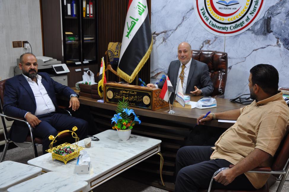 استقبل ا. د عبد الرحمن جهاد منصور عميد كلية التمريض في مكتبه مدير قسم المتابعة في جامعة تكريت السيد معصتم خضير حسين ونخبة من موظفي القسم وجرى خلال اللقاء مناقشة منظومة الكاميرات والشاشات الخاصة بها بالإضافة إلى الجانب الأمني للكلية .