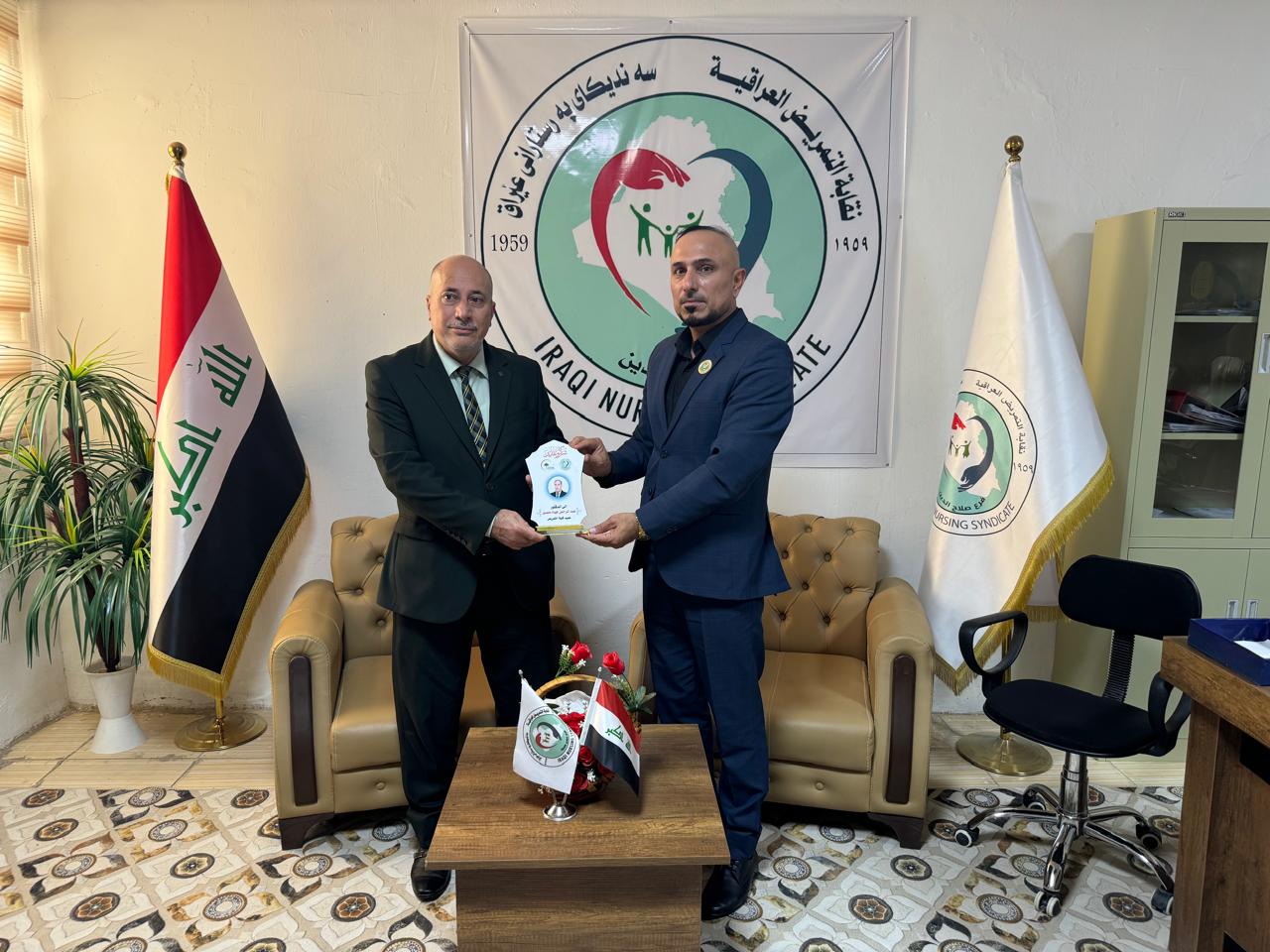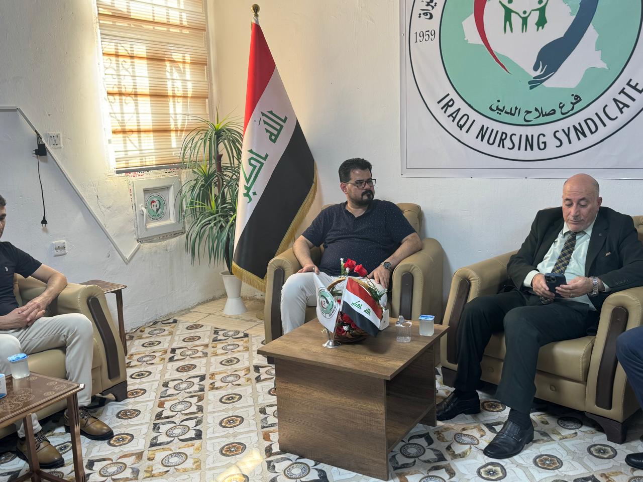 ضمن سلسلة الزيارات الميدانية والنهوض بواقع التمريض في المحافظة زار الاستاذ الدكتور عبد الرحمن جهاد منصور عميد كلية التمريض جامعة تكريت مع عدد من اساتذة الكلية مقر نقابة التمريض فرع صلاح الدين ملتقيا بالاستاذ حسين جمعة نقيب الممرضين فرع صلاح الدين.