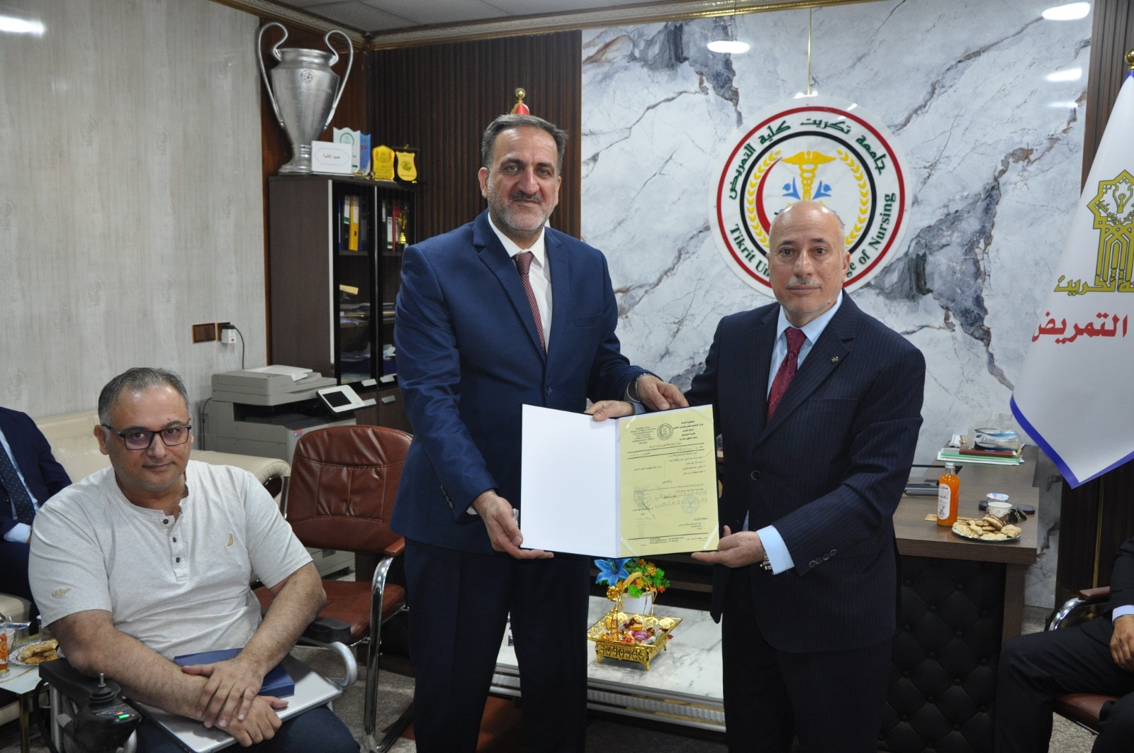 استقبل أ.د عبد الرحمن جهاد منصور عميد كلية التمريض المحترم في مكتبه صباح يوم الاربعاء 2024/10/23 وفد وزارة العدل لجنة حقوق الانسان وتم خلال الزيارة مناقشة ملف المرأة المعاقة إلى ذلك أبدى الوفد الزائر استعداده التام لفتح آفاق التعاون المشترك مع عمادة الكلية وإقامة الورش والندوات العلمية التوعوية في مجال حقوق الانسان دعماً للبرنامج التعليمي في الكلية وتطويره .