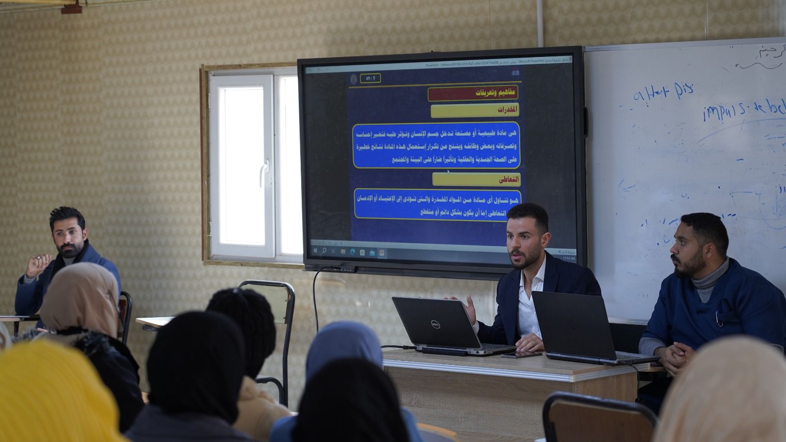 نظم مجموعة من طلبة كلية التمريض وتحت اشراف أ. م. د. ميثاق بيات والسيد انس علي والسيد بازالدين باسل حملة توعوية اقامها الفريق التوعوي من طلبة كلية التمريض ضد المخدرات وقد تناولت الحملة التعريف بالمخدرات واصنافها واسباب تعاطيها وتأثيراتها على الفرد والمجتمع وماهي سبل الوقاية والعلاج والعواقب القانونية بحق المتعاطي.