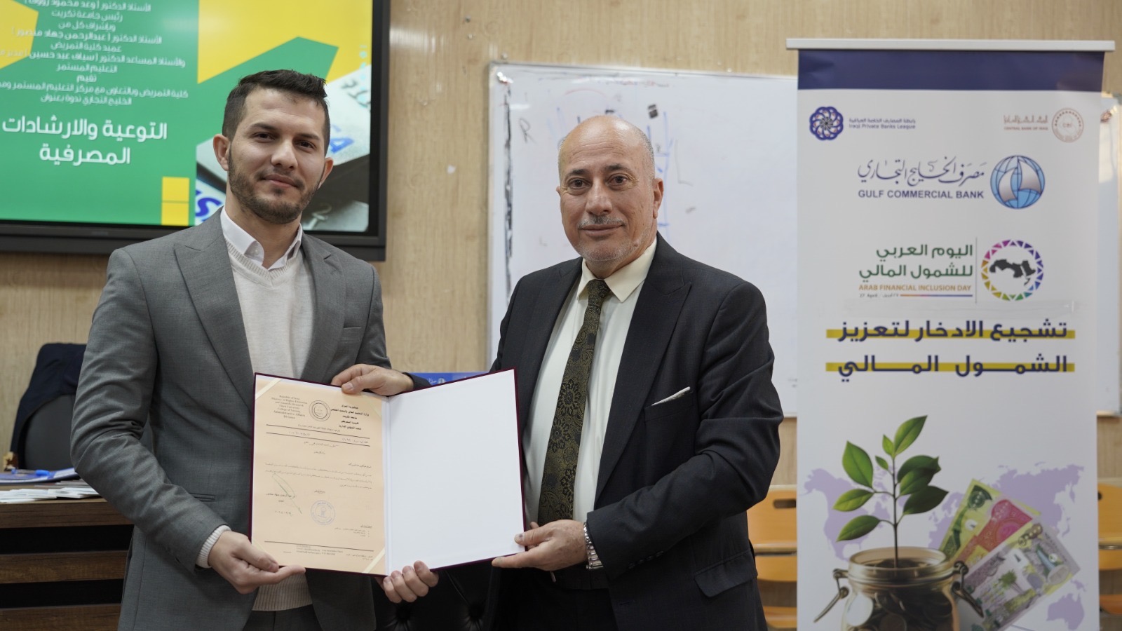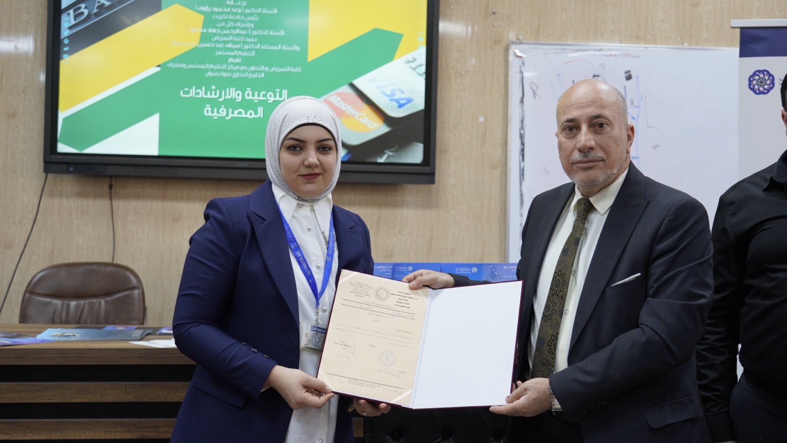 برعاية السيد رئيس جامعة تكريت (أ. د. وعد محمود رؤوف المحترم) والسيد عميد كلية التمريض (أ. د. عبد الرحمن جهاد منصور المحترم) نظمت كليتنا وبالتعاون مع مركز التعليم المستمر ومصرف الخليج التجاري ندوة بعنوان (التوعية والإرشادات المصرفية) وذلك اليوم الاثنين الموافق 30/12/2024 وعلى القاعة رقم (1) في الكلية.